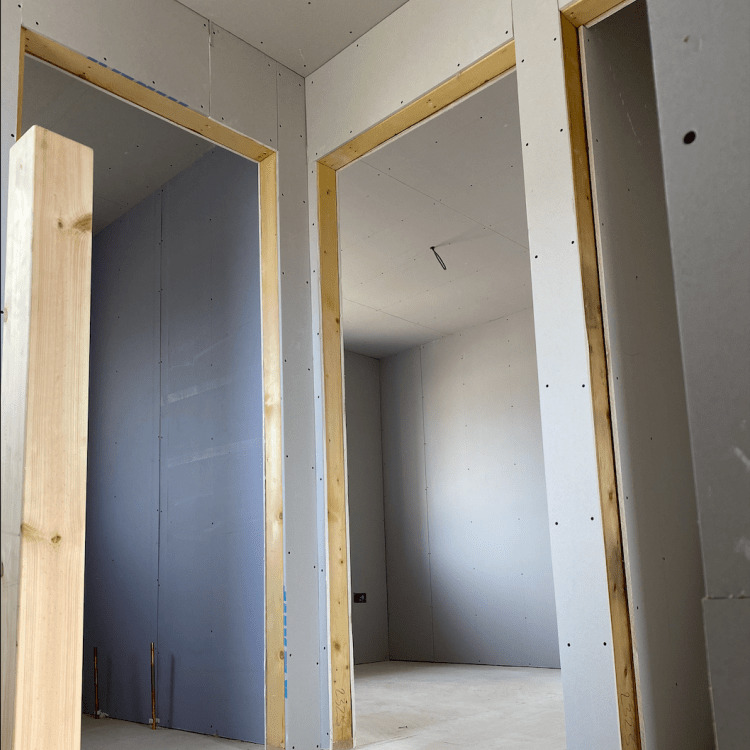 The team here at Chivers and Co Cornwall can create this in many ways; tacking straight to timber frame studs with dry wall screws, dot and dabbing with adhesive giving a solid bond to background surfaces or forming rooms and suspended ceilings with metal stud or metal frame (MF).